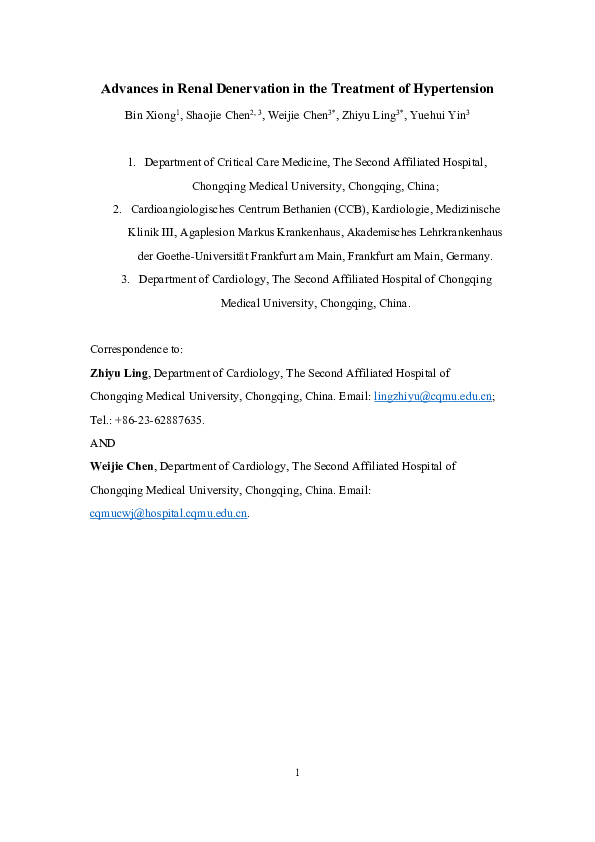 Hypertension can lead to a significant increase in the risk of cardiovascular events, with a high rate of disability and mortality. It is one of the common causes of cardiovascular and cerebrovascular accidents, which seriously affect patients’ quality of life and lifespan. Currently, treatment strategies for hypertension are mainly based on medication and lifestyle interventions. The renal sympathetic nervous system plays an important role in the pathogenesis of hypertension, and catheter-based renal denervation (RDN) provides a new concept for the treatment of hypertension. In recent years, studies on RDN have been carried out worldwide. This article reviews the latest preclinical research and clinical evidence.